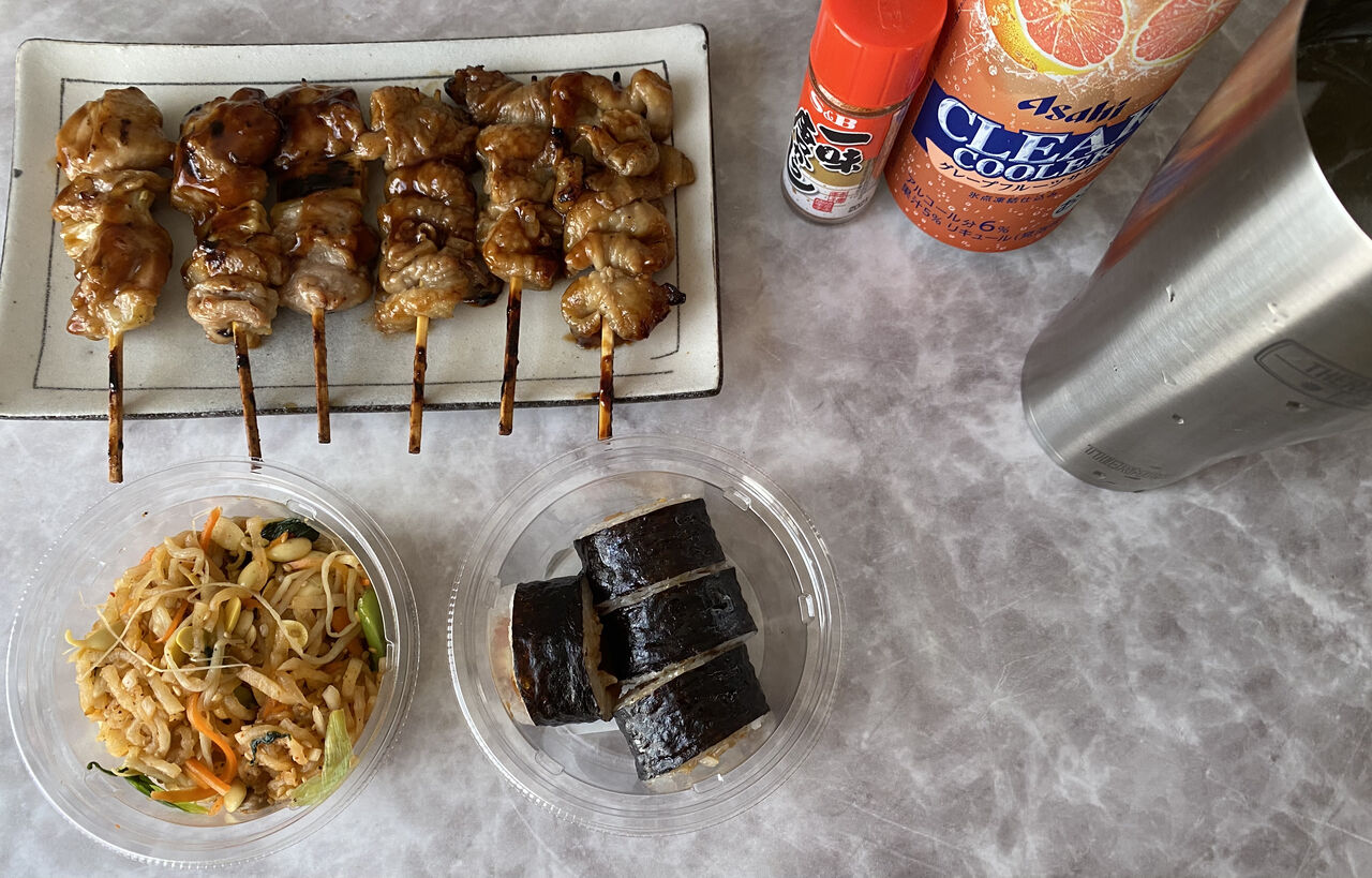 昨日の残りのミニ焼き鳥も。