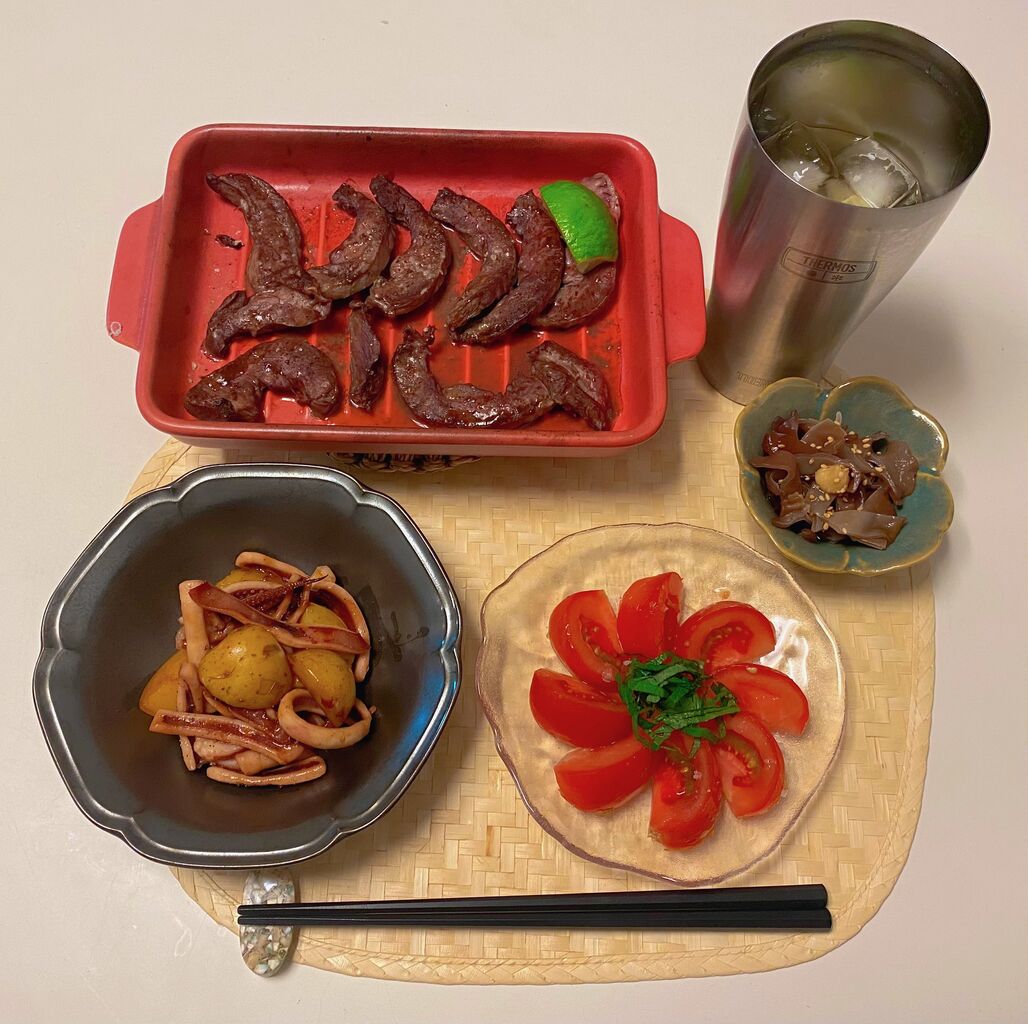 砂肝も半額ゲットで、薄切りにして耐熱ボウルに入れ、酒と塩とにんにくチューブかけてレンジでチン。