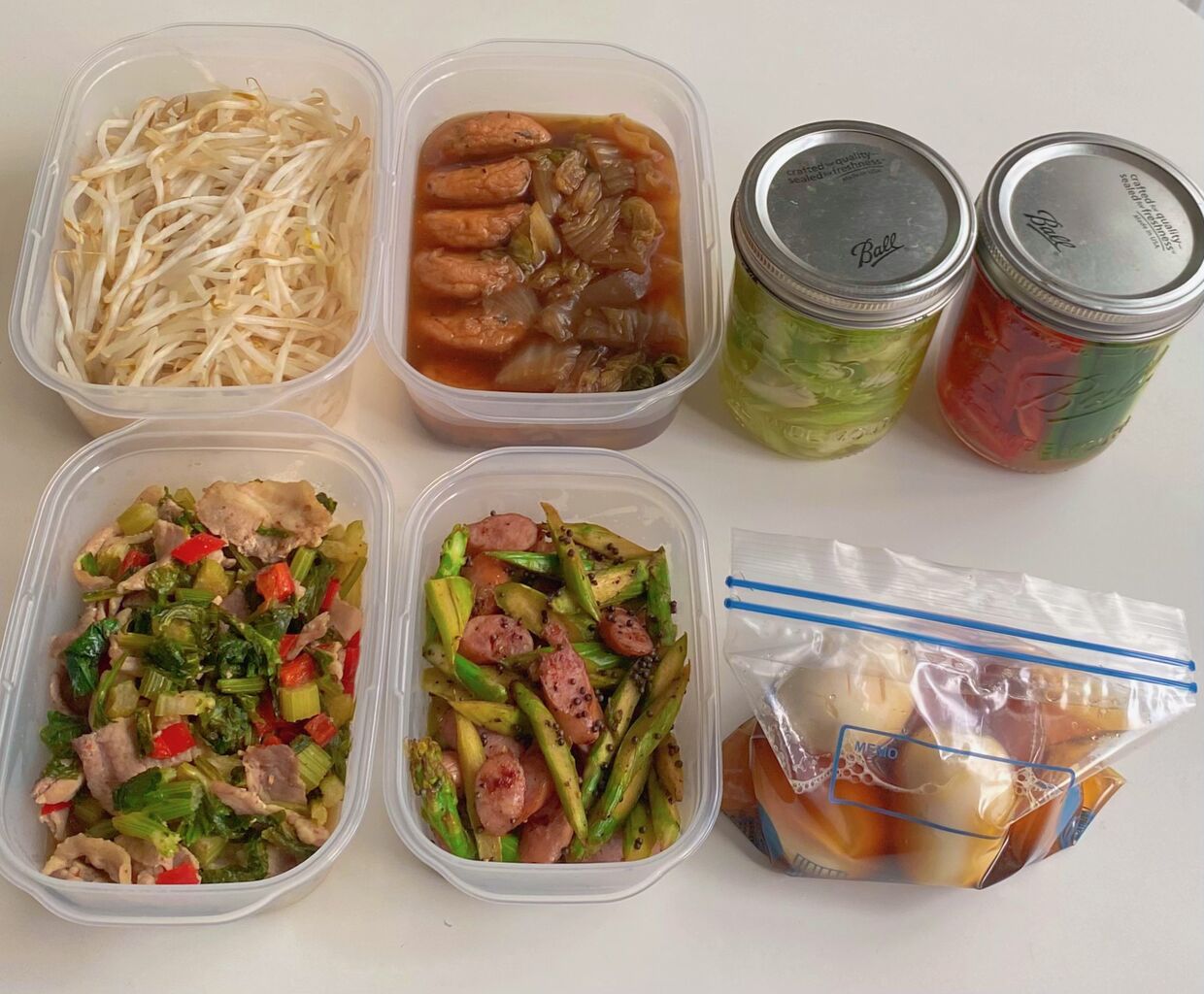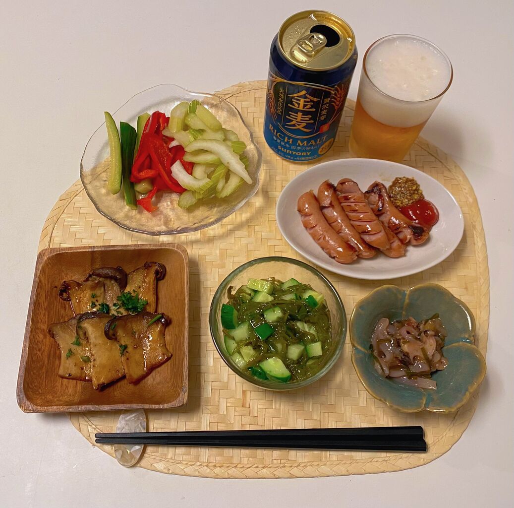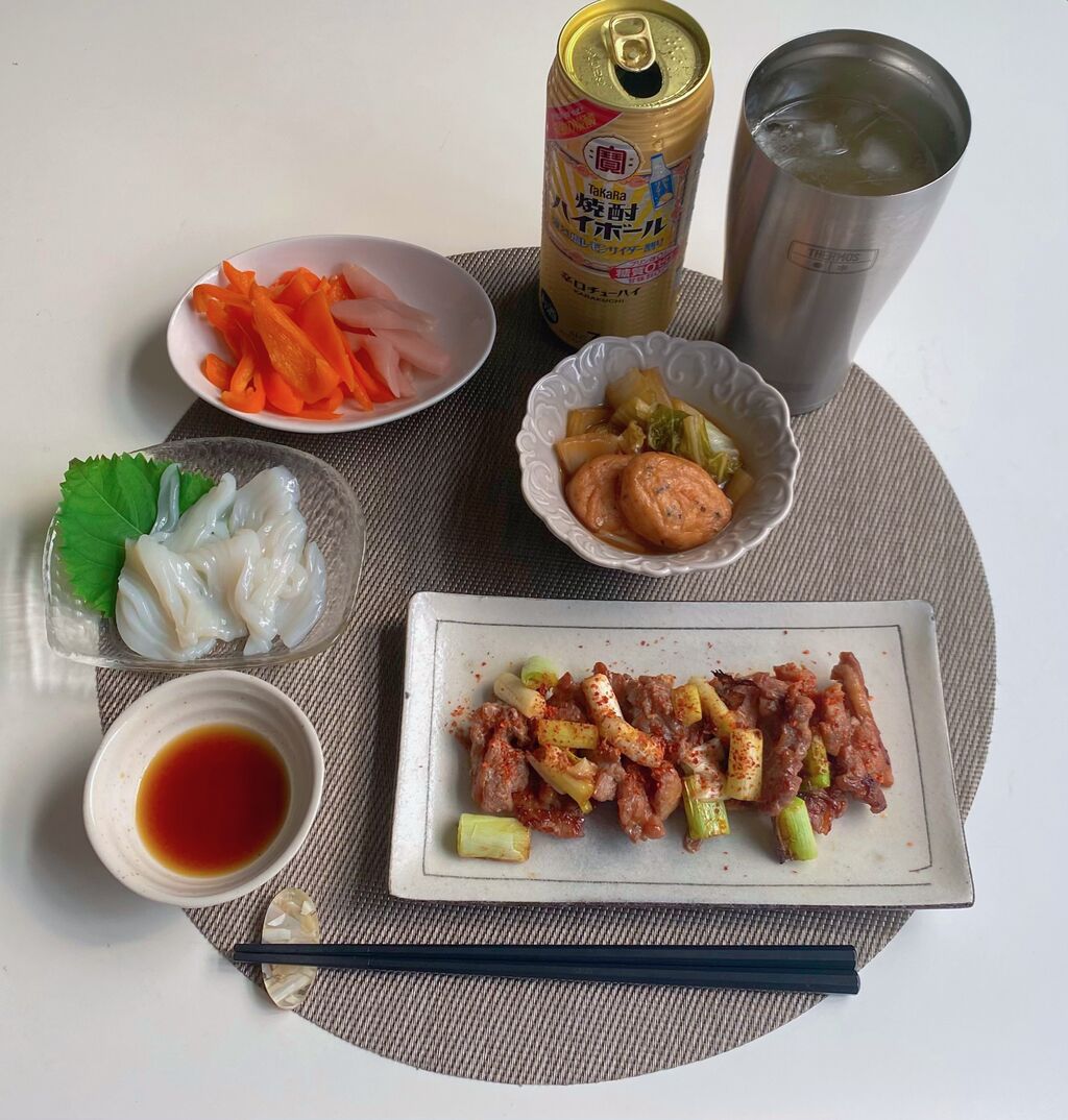奥の謎の茶色いやつはスーパーで半額だった焼くだけの味付け肉だけどあんまり美味しくなくてずっと冷凍庫に残っていた物…