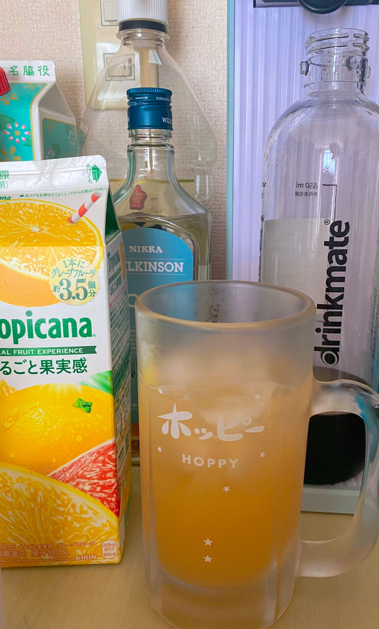 100%グレープフルーツに炭酸注入してウォッカと割れば、もはや缶チューハイの本搾り風!!