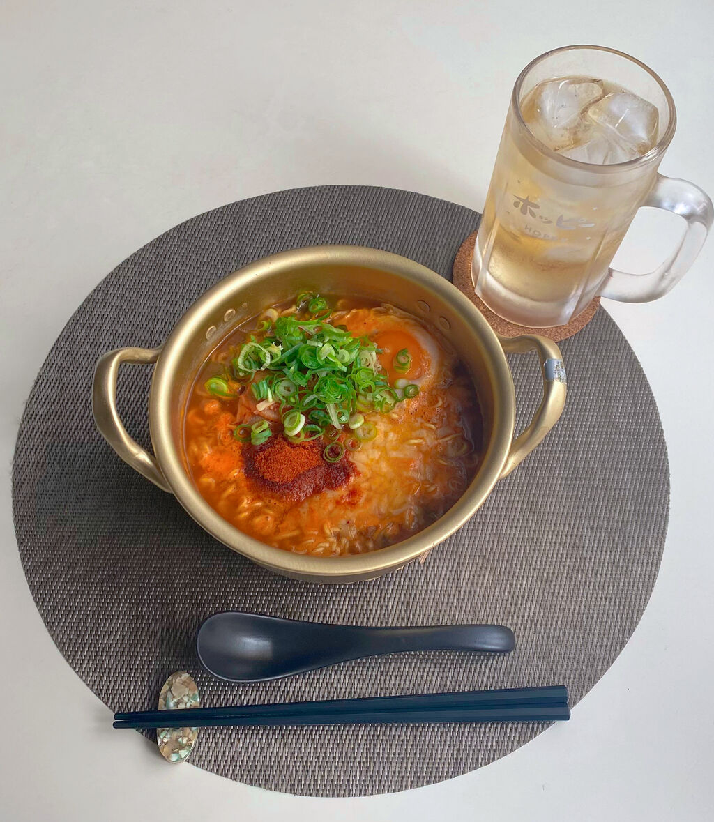 (トッピング・キムチ、卵、チーズ、ネギ、カイエンペッパー)