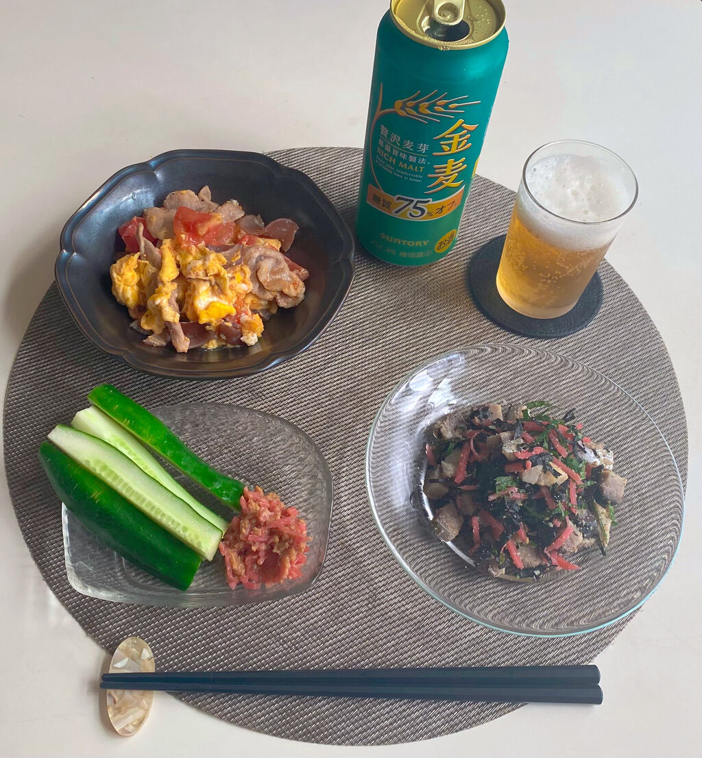 かたや、昨日の残りの〆さばと紅生姜、大葉、海苔、すりごまを和えたものはめちゃくちゃ美味しかったです。