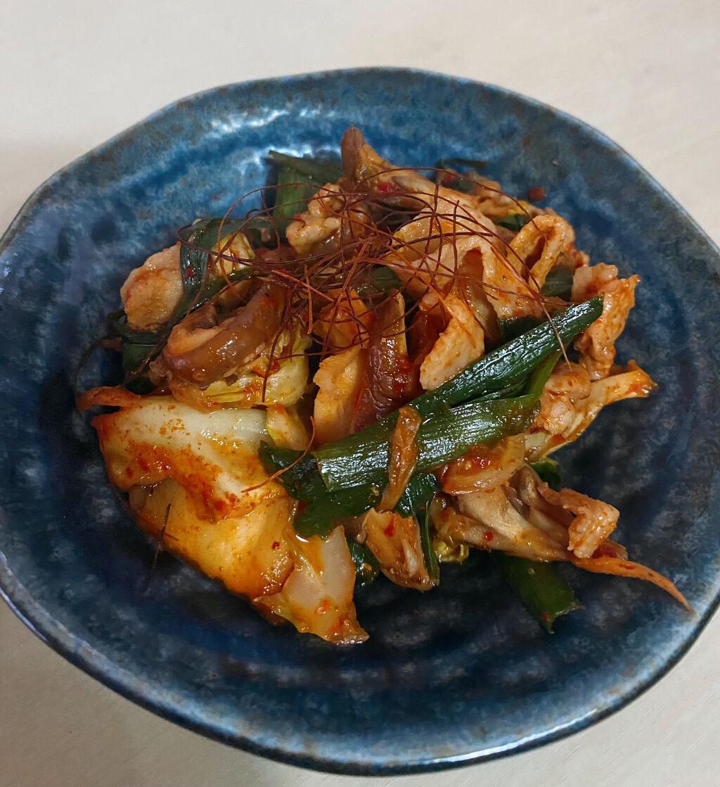 (カイエンペッパーをモサモサと入れた豚キムチ)